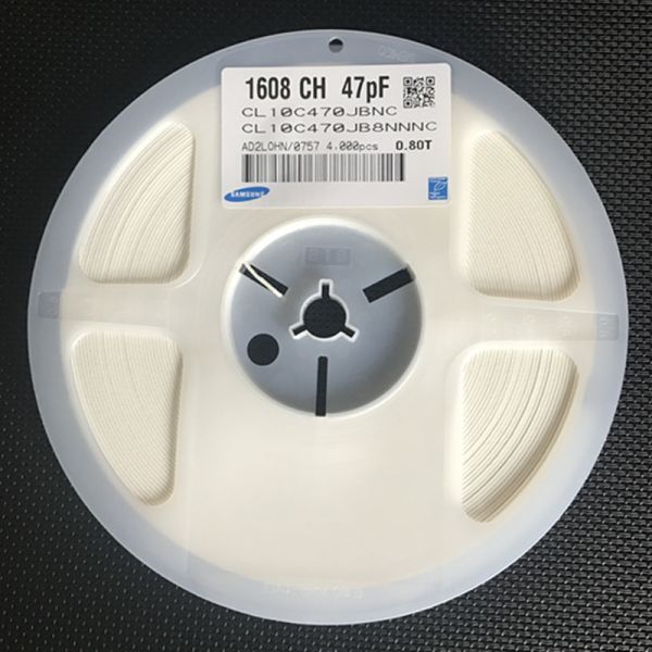 CL10C470JB8NNNC MLCC 47pF Ceramic Capacitor andplusmn;5% Tolerance 50V Rating C0G Dielectric 0402 Case Stable -55anddeg;C to +125anddeg;C Range High Q Value RoHS Compliant Tape andamp; Reel Packaging
